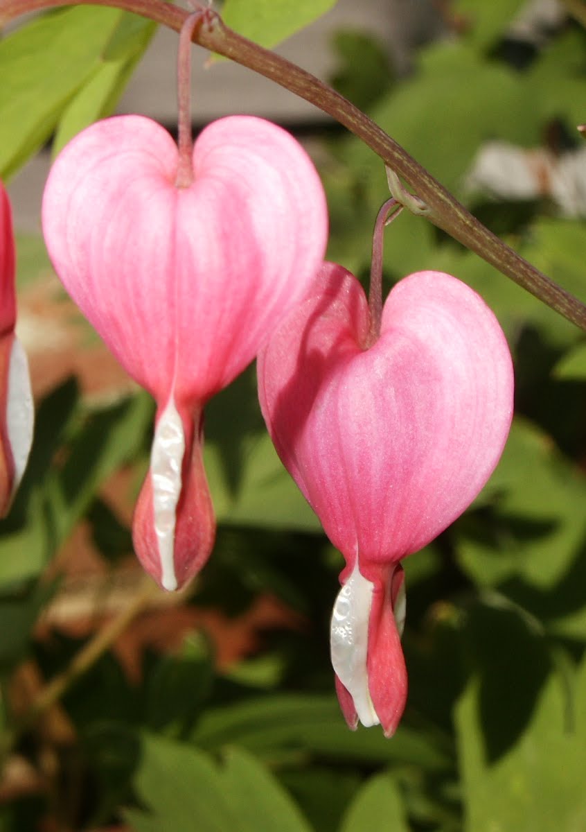 These Bleeding Hearts (Dientra spectabilis) will bloom again then in my neighbor's yard.